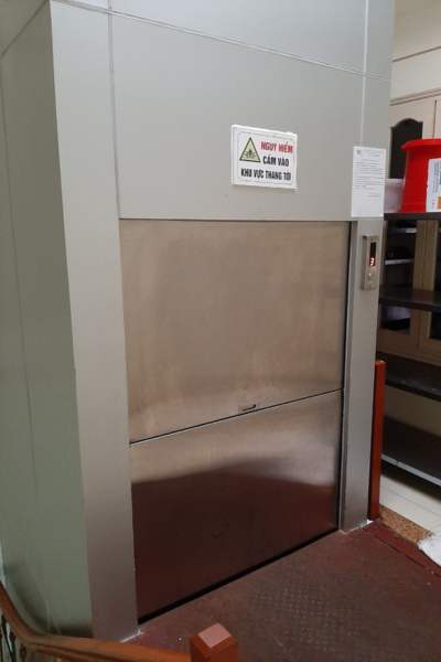 Ngoài ra, thang còn giữ cho khu bếp luôn sạch sẽ và chuyên nghiệp, tránh tình trạng ùn tắc hay va chạm khi vận chuyển thủ công. Đây là giải pháp lý tưởng giúp tăng năng suất làm việc, rút ngắn thời gian phục vụ và đảm bảo vệ sinh an toàn thực phẩm tuyệt đối trong môi trường dịch vụ ăn uống.